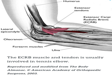 This occurs during a tennis groundstroke, for example. When the ECRB is weakened from overuse, microscopic tears form in the tendon where it attaches to the lateral epicondyle. This leads to inflammation and pain.